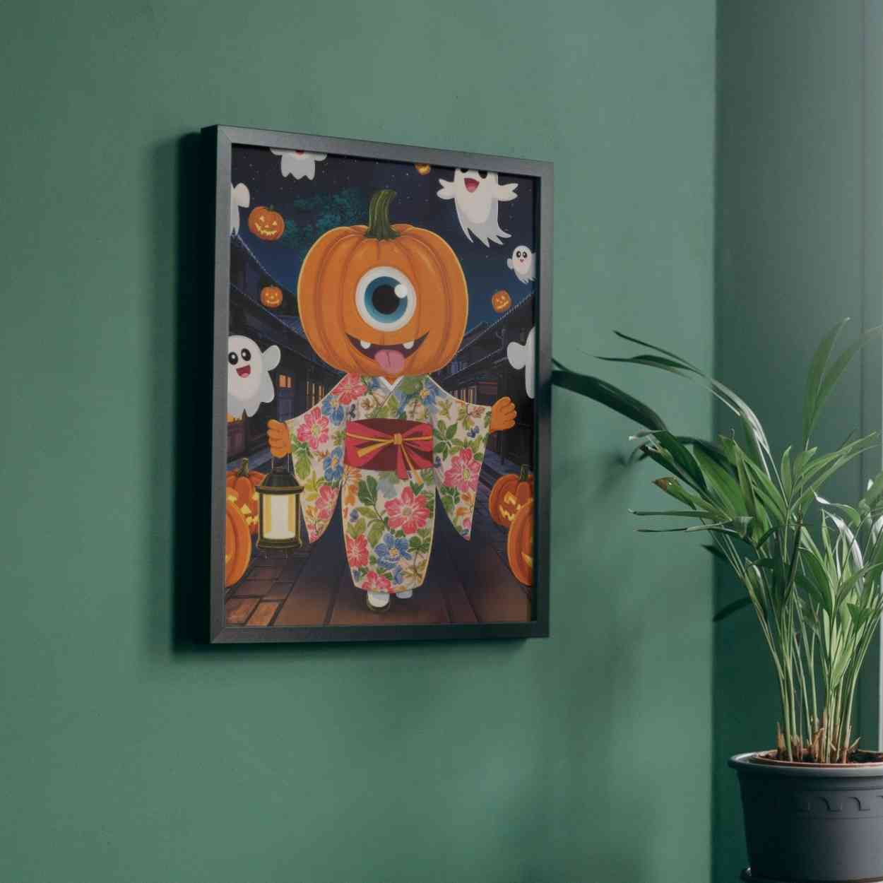 Hitotsume Kozo Halloween Version | Japanese Yokai Art | Cute Pumpkin Ghost Poster | Digital Download| Halloween Wall Decor(A0 / 300dpi JPEG)