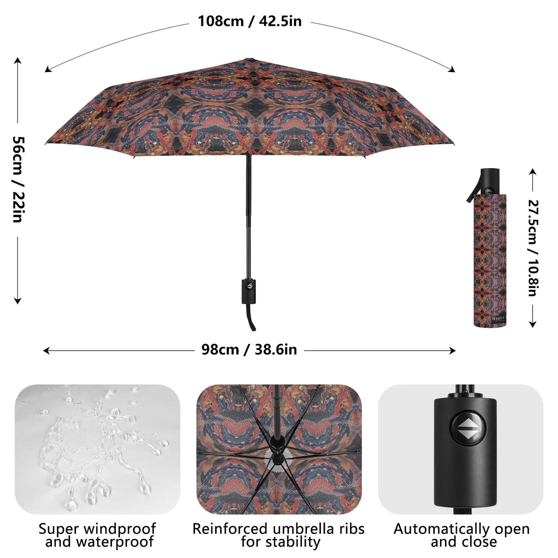 葛飾北斎風UVカット&防水折りたたみ傘 - 男女兼用晴雨兼用日傘、日本のアートプリント軽量自動開閉傘、外側プリント