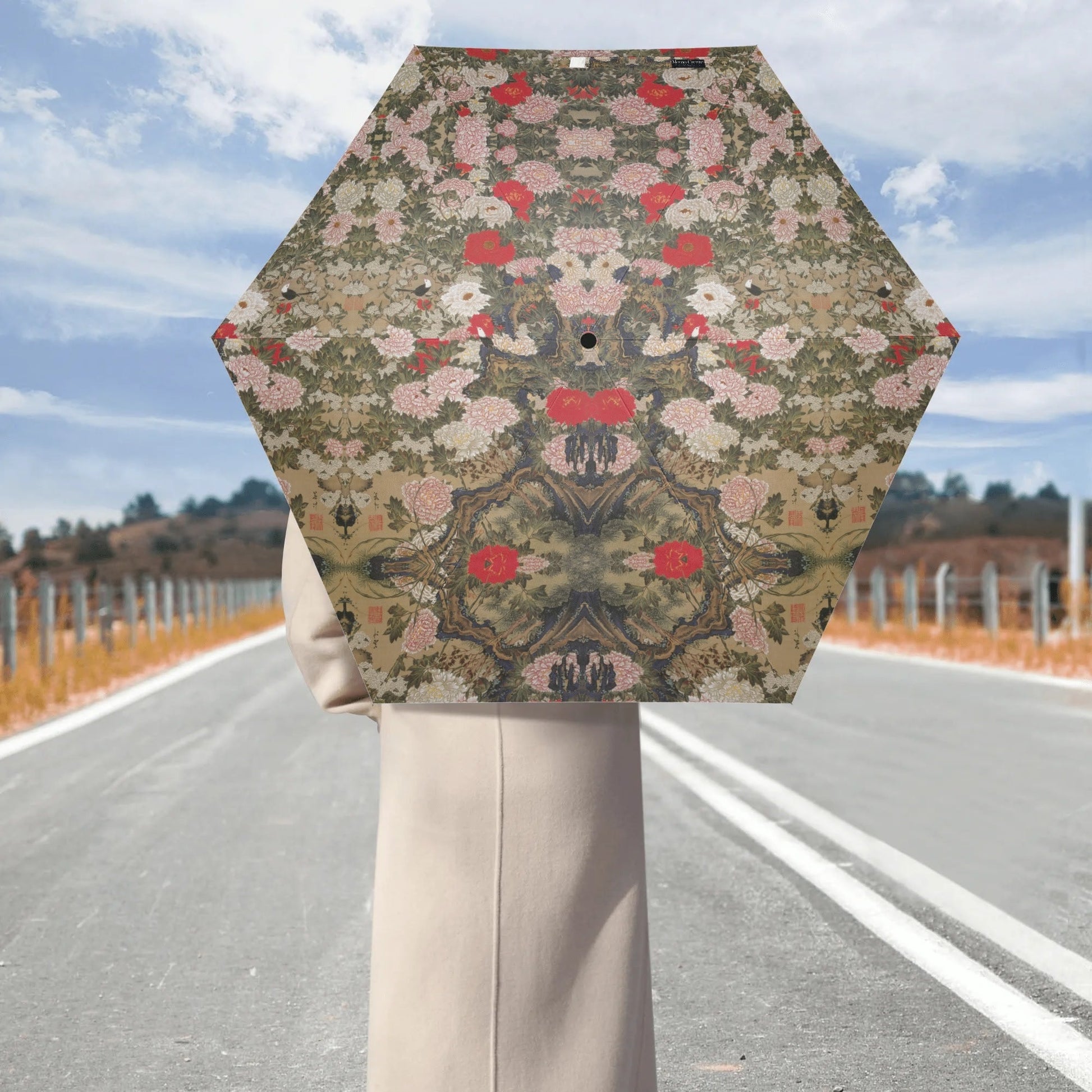 花がささやく場所 ― 伊藤若冲作「牡丹と鳥」をモチーフにしたアート傘(1765年)―紫外線・雨よけ