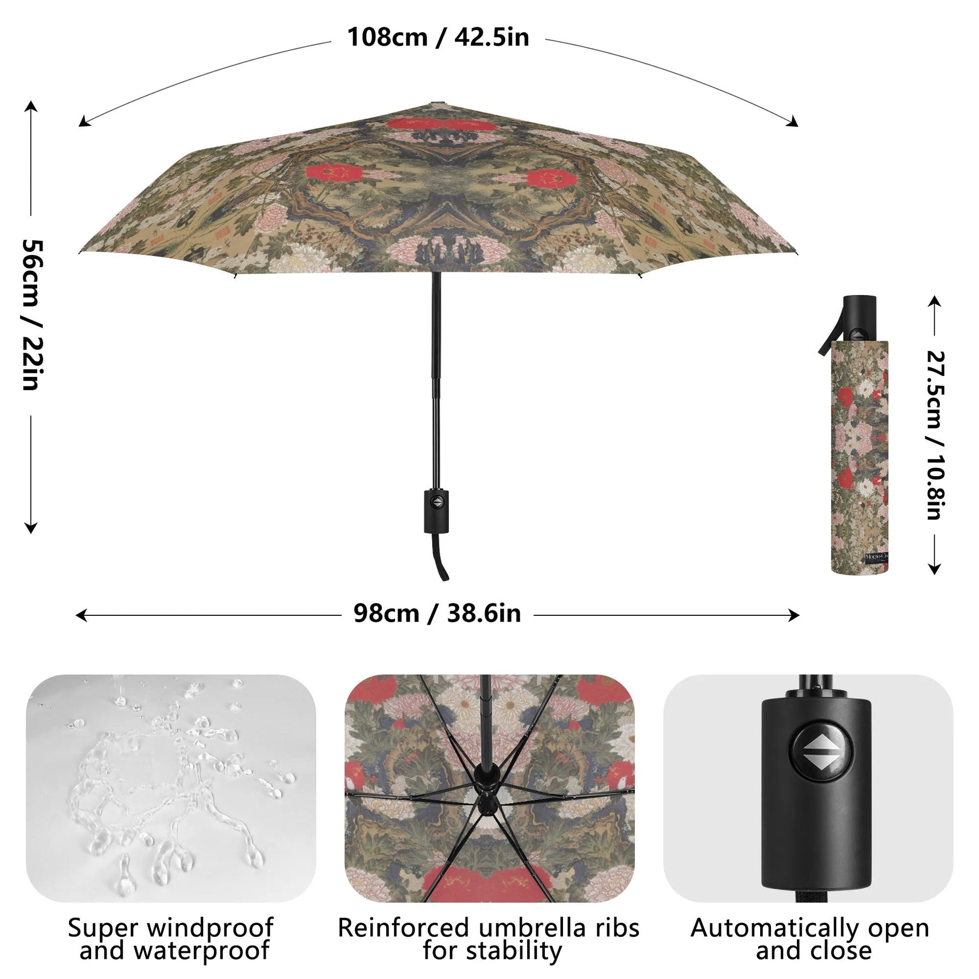 北斎の伝説的な技巧にインスパイアされたこの折りたたみ傘は、神話に登場する鳳凰の優美な力強さを、印象的な全天候型デザインで表現しています。雨よけとしてだけでなく、灼熱の夏の日差しからあなたを守る、ユニセックスで持ち運びやすい一品です。エレガントさと実用性を兼ね備えた、まさに携帯に便利な一品です。コンパクトで軽量なフォルムはバッグにすっきり収まり、街歩き、海辺の散策、あるいは遠出の旅など、毎日の必需品として活躍します。突然の雨や強い紫外線から身を守ってくれるこの日傘は、時代を超えた日本の芸術と現代的な全天候型性能を融合させています。