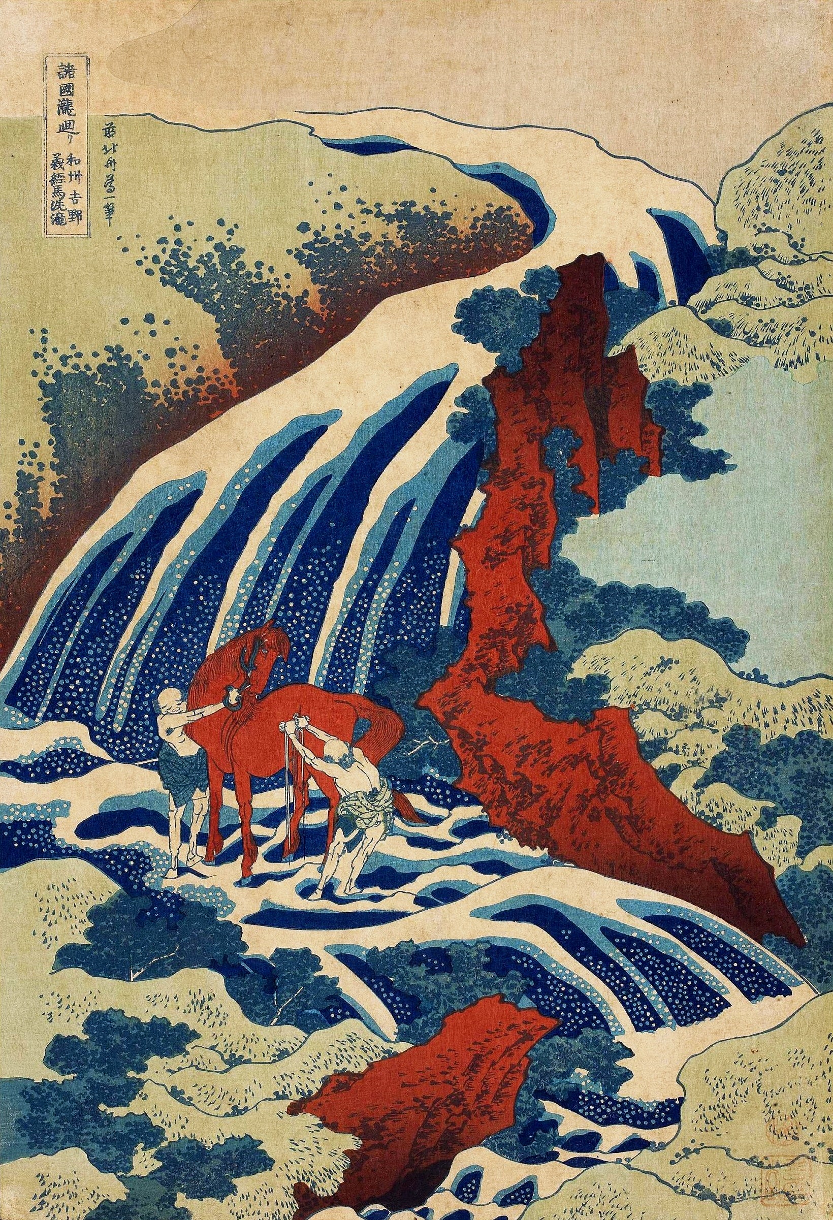 静かな嵐 - 吉野の滝 葛飾北斎作 光沢マグカップ