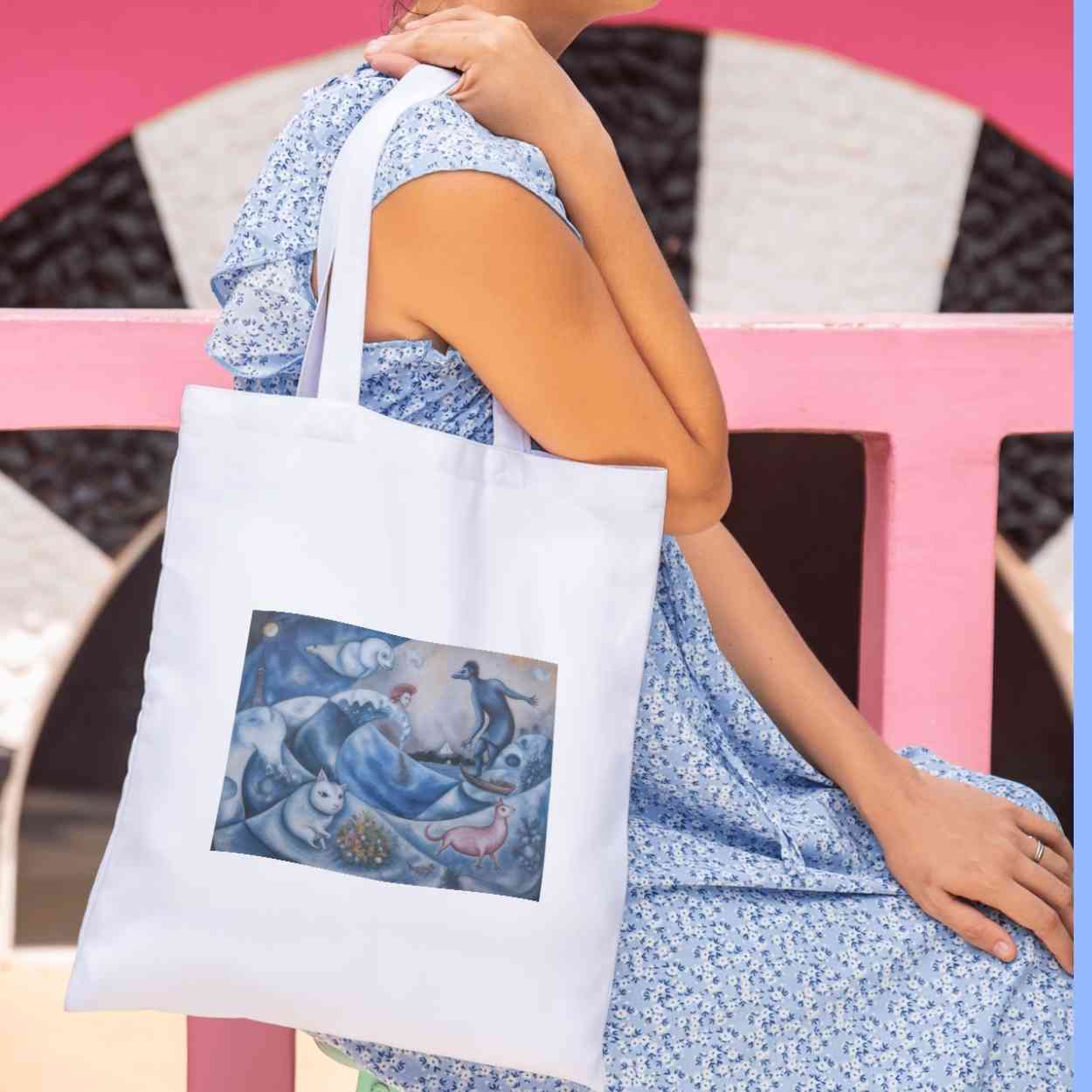 A poetic reimagining of Hokusai’s The Great Wave off Kanagawa, seen through the tender surrealism of Marc Chagall.