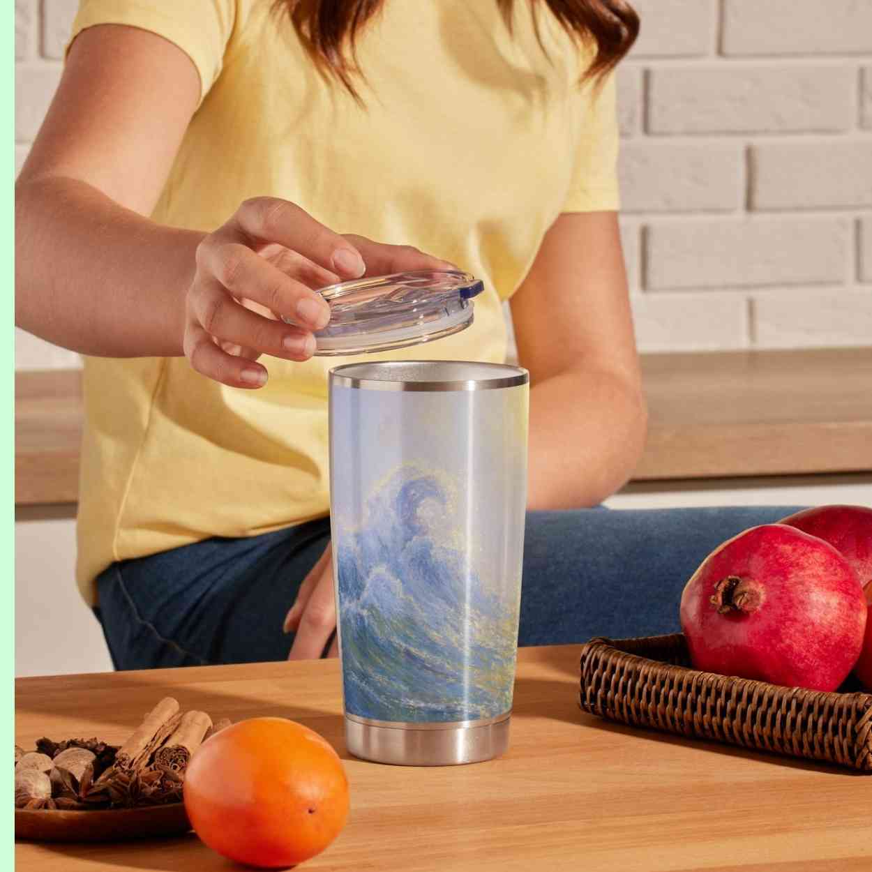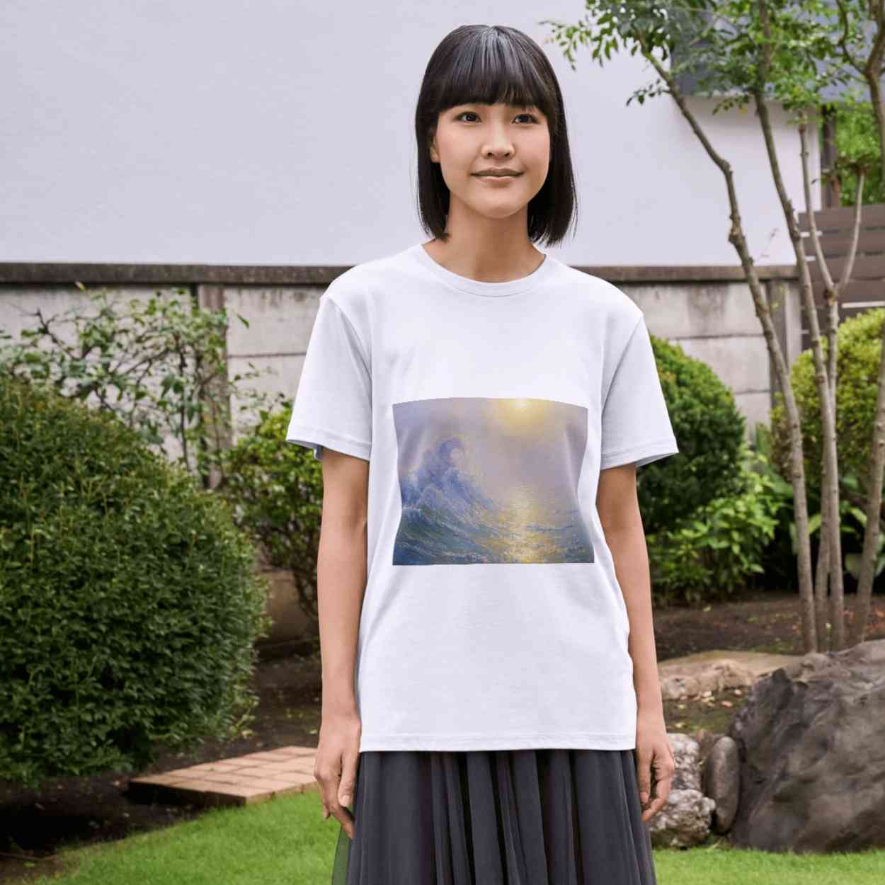 A serene fusion of Claude Monet’s soft impressionist light and Hokusai’s timeless composition, The Great Wave off Kanagawa.