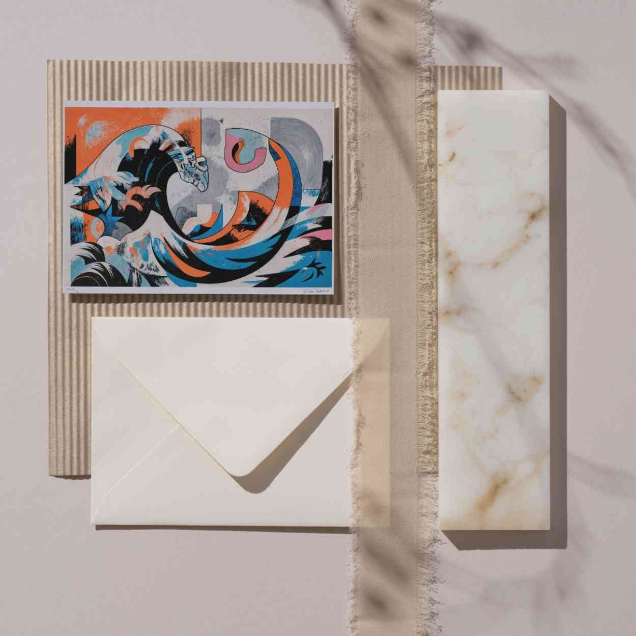 A bold fusion of Katsushika Hokusai’s The Great Wave off Kanagawa and the fragmented vision of Pablo Picasso’s Cubism.